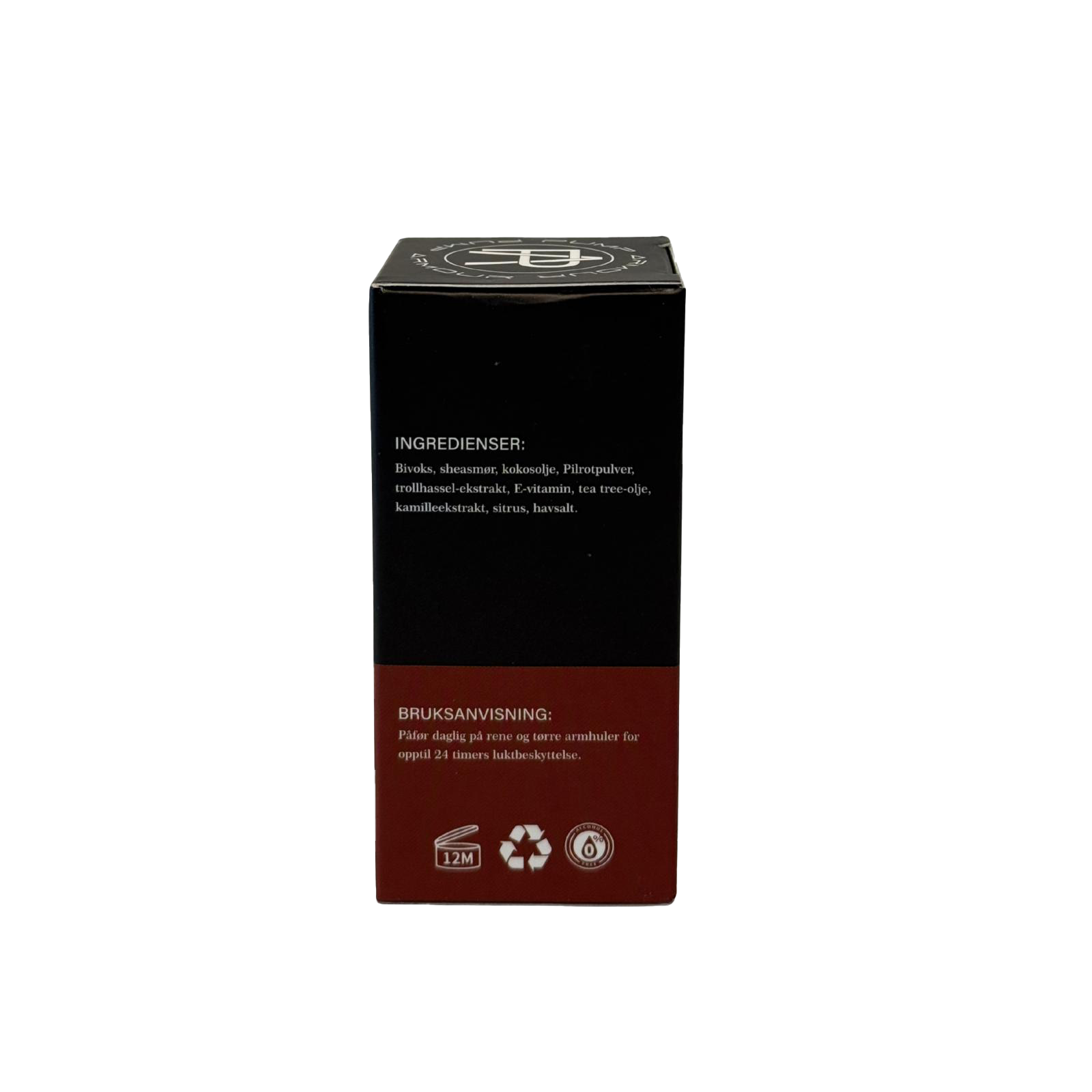 • Pilrotpulver – Absorberer fuktighet naturlig og holder armhulene tørre uten en “greasy” følelse.